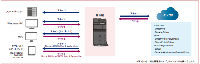 さらにモバイル端末やクラウドに連携することで、あらゆる用途でのビジネスをサポートします。